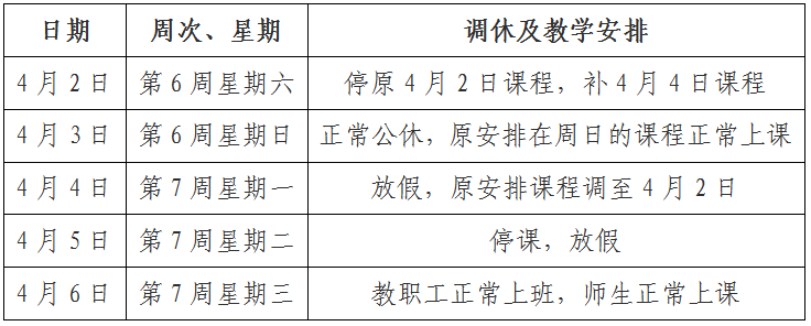 根据学校通知,现将清明节放假调休期间教学有关工作安排如下:
