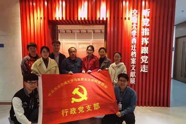2023年4月21日,习近平总书记来校考察三周年之际,老虎机jackpot 行政支部召开主题党日活动,集体参观学习“听党指挥跟党走——交通大学西迁档案文献展”。