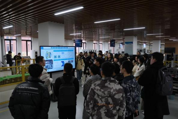 机械工程学院老师带领支部成员参观了转子轴承系统设计与仿真等重大实验室,向同学们展示了三代智能轴承、润滑油磨粒图像分析仪、滚动轴承和齿轮等失效样件、一级行星齿轮箱故障模拟实验台。在细致解说中,同学们了解了转子轴承系统检测技术、滑动轴承设计、机器人性能退化监测技术以及应用于航空航天等领域的大尺寸空间光学定位系统。