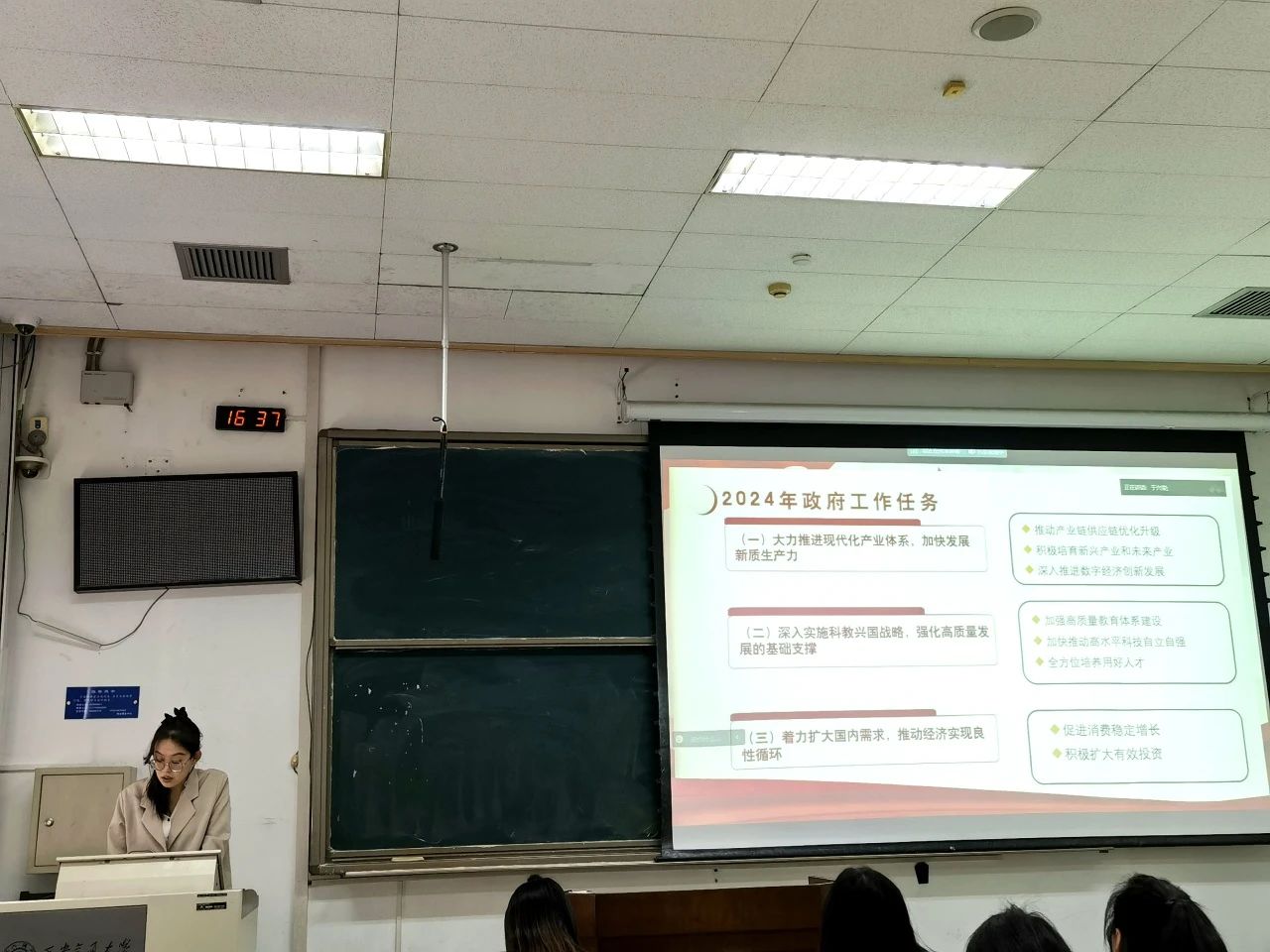 硕2128党支部的邵雪蓉同志带领大家学习了2024年政府工作报告,她从2023年工作回顾、2024年经济社会发展总体要求和政策取向,以及2024年政府工作任务三方面分享了两会的相关内容,使同学们更加深入地了解到国家在过去一年取得的成绩亮点,以及新的一年的发展方向,引导同学们在把握时代脉搏中进一步明确奋斗目标。