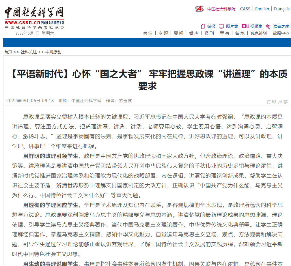 用透彻的学理回应学生。学理是学术原理及知识内在联系,是客观规律的学术表现,是政理所蕴含的科学思想与方法论。思政课要深刻阐发马克思主义的精髓要义与思想内涵,讲清楚党的最新理论成果的思想渊源、理论依据,引导学生读马克思主义经典著作、当代中国马克思主义理论著作、中华优秀传统文化典籍等。让学生正确理解经典著作,掌握马克思主义精髓,感知中华文化魅力,自觉运用马克思主义立场、观点、方法观察和解决问题,引导学生通过学习理论能够正确认识客观世界,了解中国特色社会主义发展的实践历程,深刻领会习近平新时代中国特色社会主义思想。